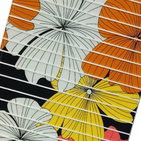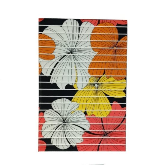 Vrei un pret mai mic, nu gasesti ce cauti, cere oferta prin email la: DescriereGresie Decor 45E 002P 30 × 45 cm Flori pop-art explozive cu dungi verticale – contrast maxim și energie retro-modernă Plăcile de gresie Decor 45E 002P prezintă un design grafic îndrăzneț și plin de viață: flori mari stilizate (roșu intens, galben solar și alb pur) pe fond negru profund, cu linii radiante din centru care creează un efect optic dinamic. Toate acestea sunt traversate de dungi verticale albe regulate, care dau un look „venetian blind” modern și adaugă mișcare și profunzime modelului. Finisajul lucios face culorile să strălucească vibrant și transformă peretele într-un adevărat statement artistic. Specificații tehnice: