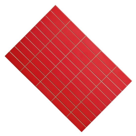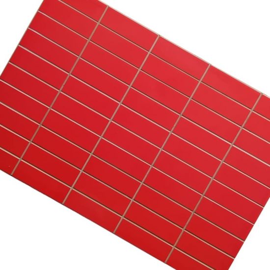 Plăcile de gresie D. Cutting Mer 7767 Rosu au un design geometric modern și foarte expresiv: suprafața este împărțită în dreptunghiuri mici (efect grilaj / mozaic), separate de linii albe subțiri care creează un aspect de plasă ordonată. Culoarea este un roșu intens, vibrant și uniform, cu finisaj lucios care reflectă lumina și dă un efect oglindă elegant și dramatic.