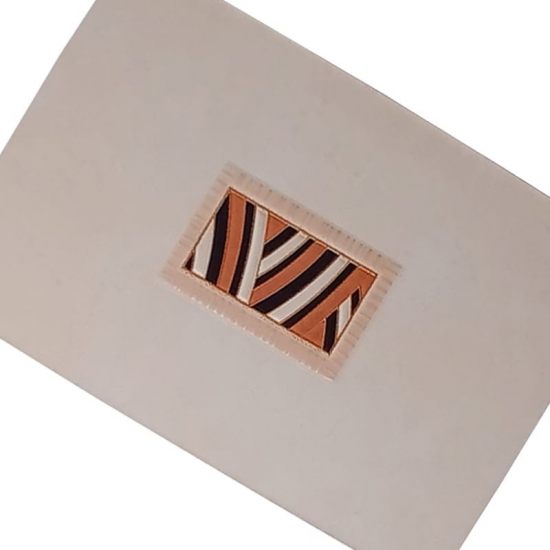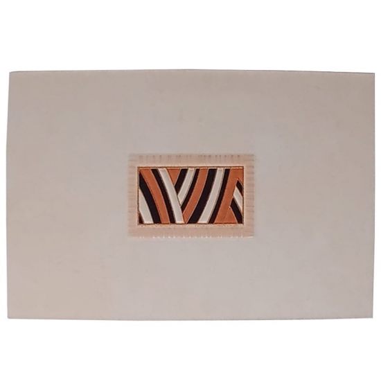 Plăcile de gresie JZ-30A-072420-104 prezintă un design grafic îndrăzneț și modern: un model zebrat stilizat cu dungi ondulate verticale în nuanțe intense de portocaliu-maroniu și negru, pe un fond bej deschis. Modelul este încadrat de un chenar subțire, iar finisajul lucios face ca dungile să pară și mai vii, creând un efect optic de mișcare și adâncime.
