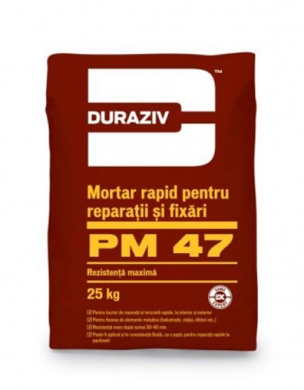 MORTAR RAPID PENTRU REPARATII SI FIXARI DURAZIV PM 47, 25KG / PALET 48 SACI [Duraziv] | 48 Saci/Palet